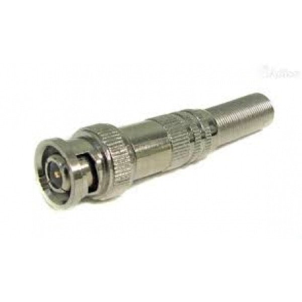 BNC კონექტორი (მამაკაცი), ხრახნიანი, RG59 კაბელისთვის, ზამბარით, სპილენძ-თუთია