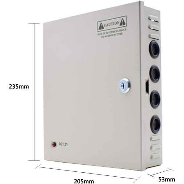 შეყვანის ძაბვა: AC100-120V / AC220-240V (110/220V გადამრთველი), გამომავალი ძაბვა: DC 12V, 9 არხის გამომავალი. შესაძლებელია 5-მდე კამერის დაკავშირება 2A მაქსიმალური დენის გამომავალი.