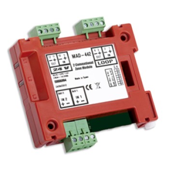 მისამართიანი მონიტორის მოდული 2 ჩვეულებრივი ზონის ჩაშენებული იზოლატორით, საშუალებას გაძლევთ დააკავშიროთ 20-მდე ჩვეულებრივი დეტექტორი და/ან 32 ჩვეულებრივი ხელით გამოძახების წერტილი ზონაში. შეუძლია იდენტიფიცირება დეტექტორის სიგნალიზაციასა და ღილაკს შორის, ხარვეზს შორის ჭრის ან მოკლე ჩართვით ზონაში. მას სჭირდება ორი მარყუჟის მისამართი. მოითხოვს 24 Vdc დამხმარე სიმძლავრეს. LED სტატუსის ინდიკატორები. დაკავშირება მოსახსნელი ზოლებით 2,5 მმ2 სექციამდე. BOX-ONE ყუთში დამონტაჟების შესაძლებლობა DIN რელსზე ან ბრტყელზე კედელზე დასამაგრებლად. მოხმარება 300 μA-ზე ნაკლები მოსვენების დროს. წითელი ფერი. ზომები: 100 x 82 x 23 მმ. CPR სერთიფიკატი EN54-18 და EN54-17.
